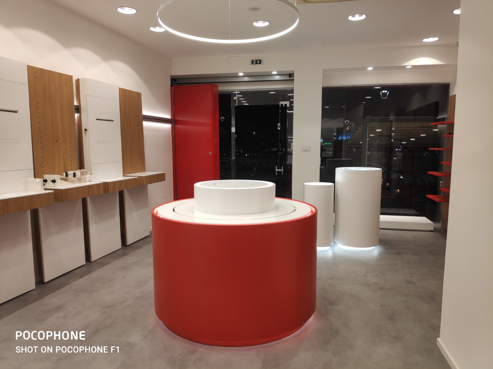 Σχεδιασμένο με λεπτότητα, φαντασία, καθαρές γραμμές και εργονομία και υψηλές απαιτήσεις χρήσης το κατάστημα γνωστής εταιρίας υλοποιήθηκε.